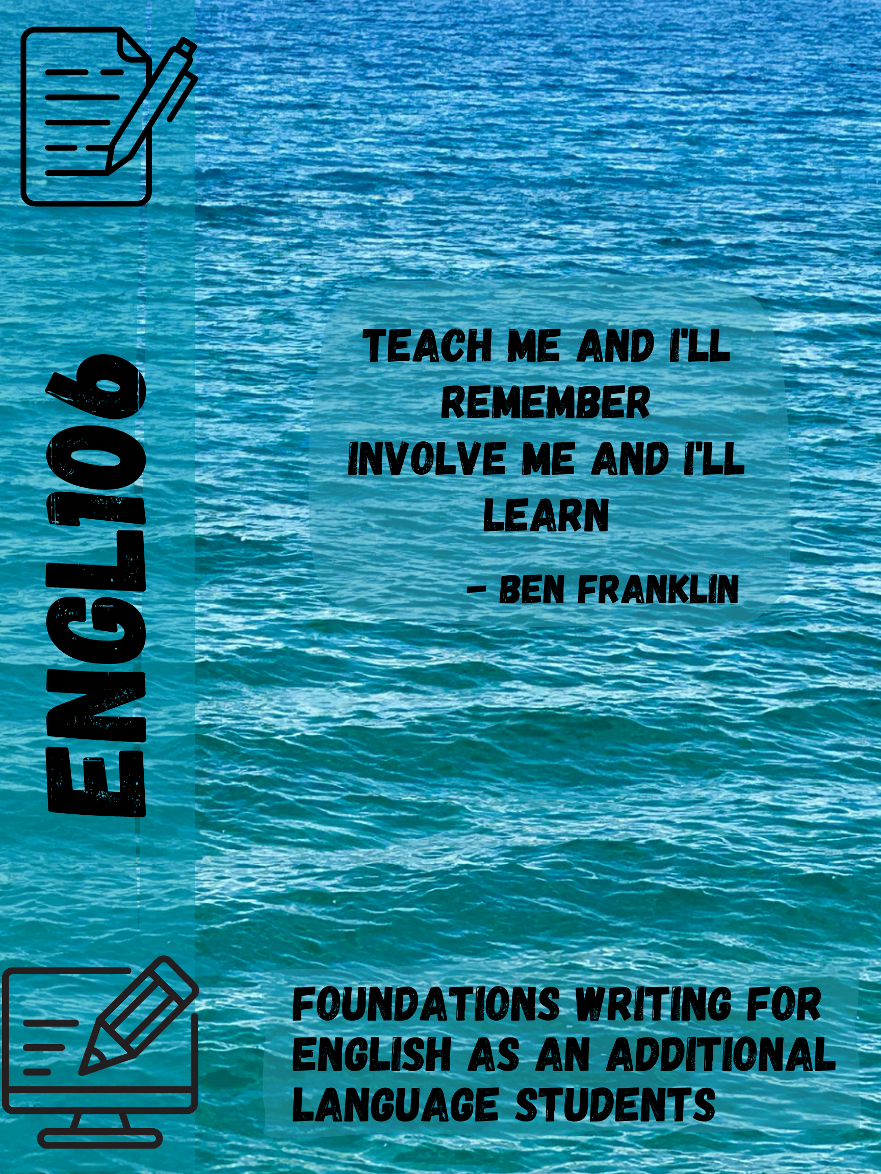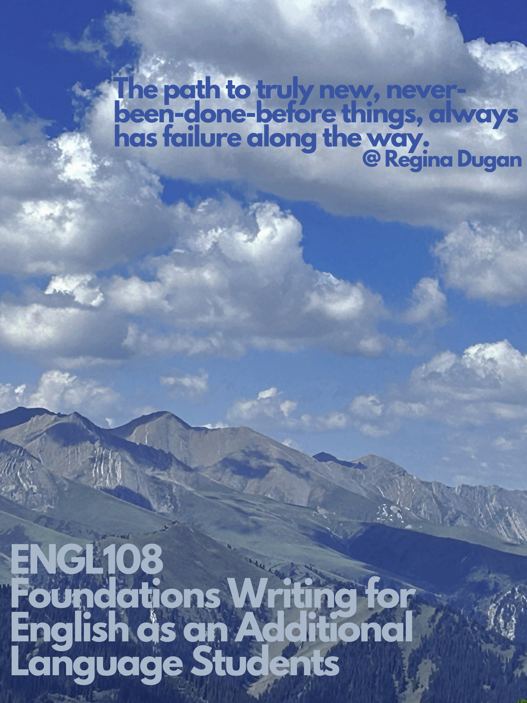 In my teaching, I am passionate about creating visually engaging course posters. Below are the six posters I designed when teaching the Foundations Writing for English as an Additional Language Students courses at the University of Arizona.
